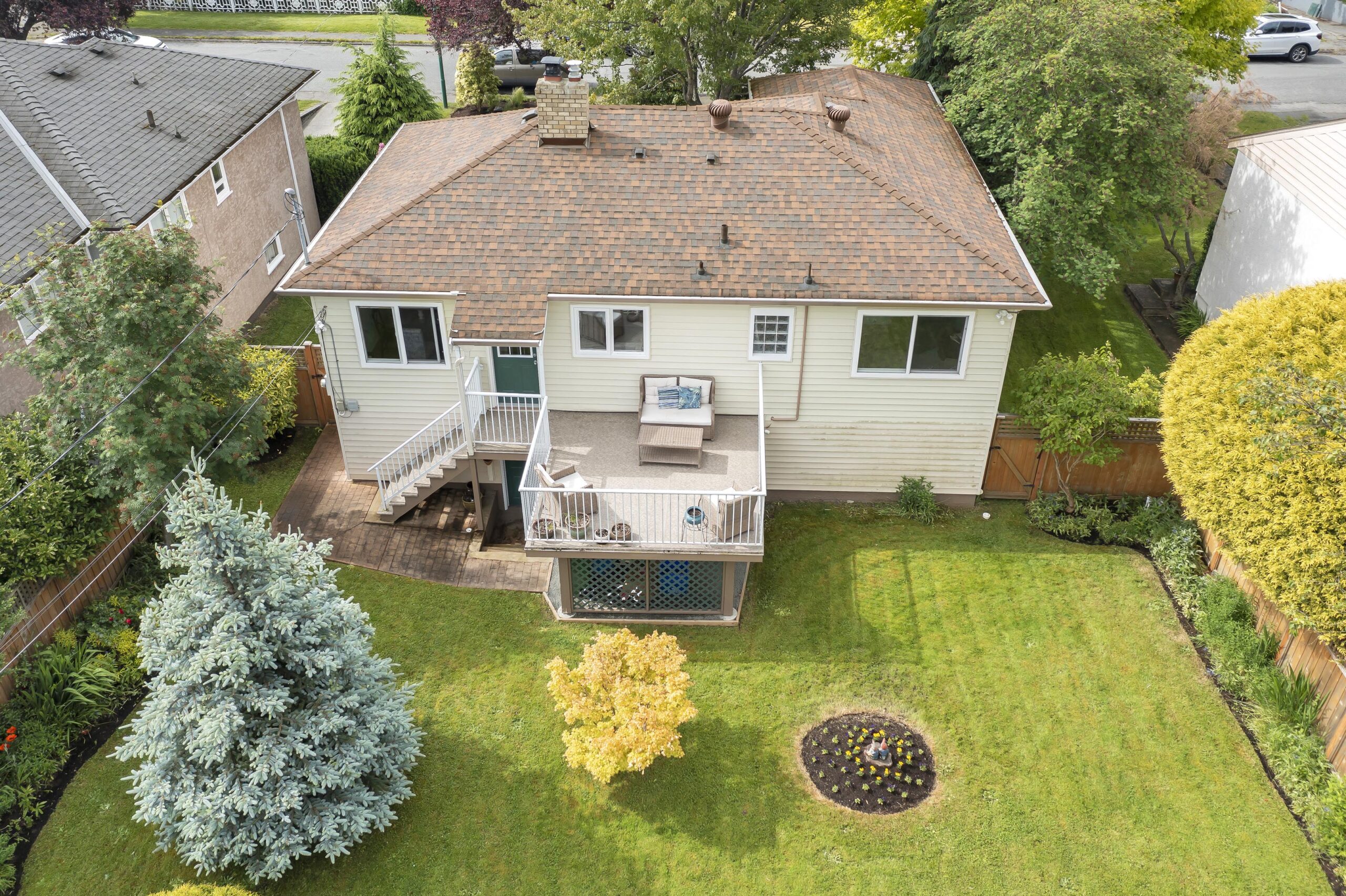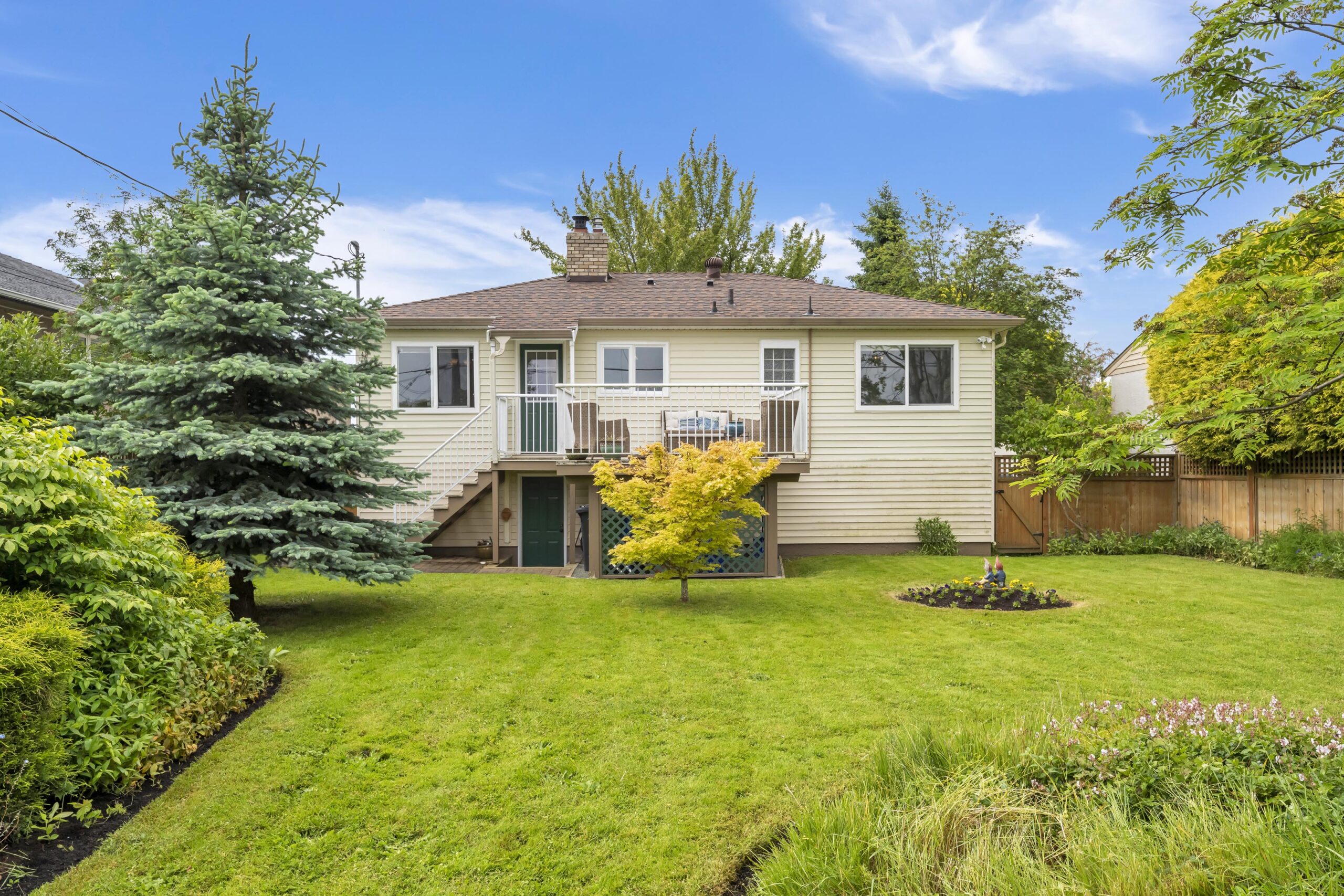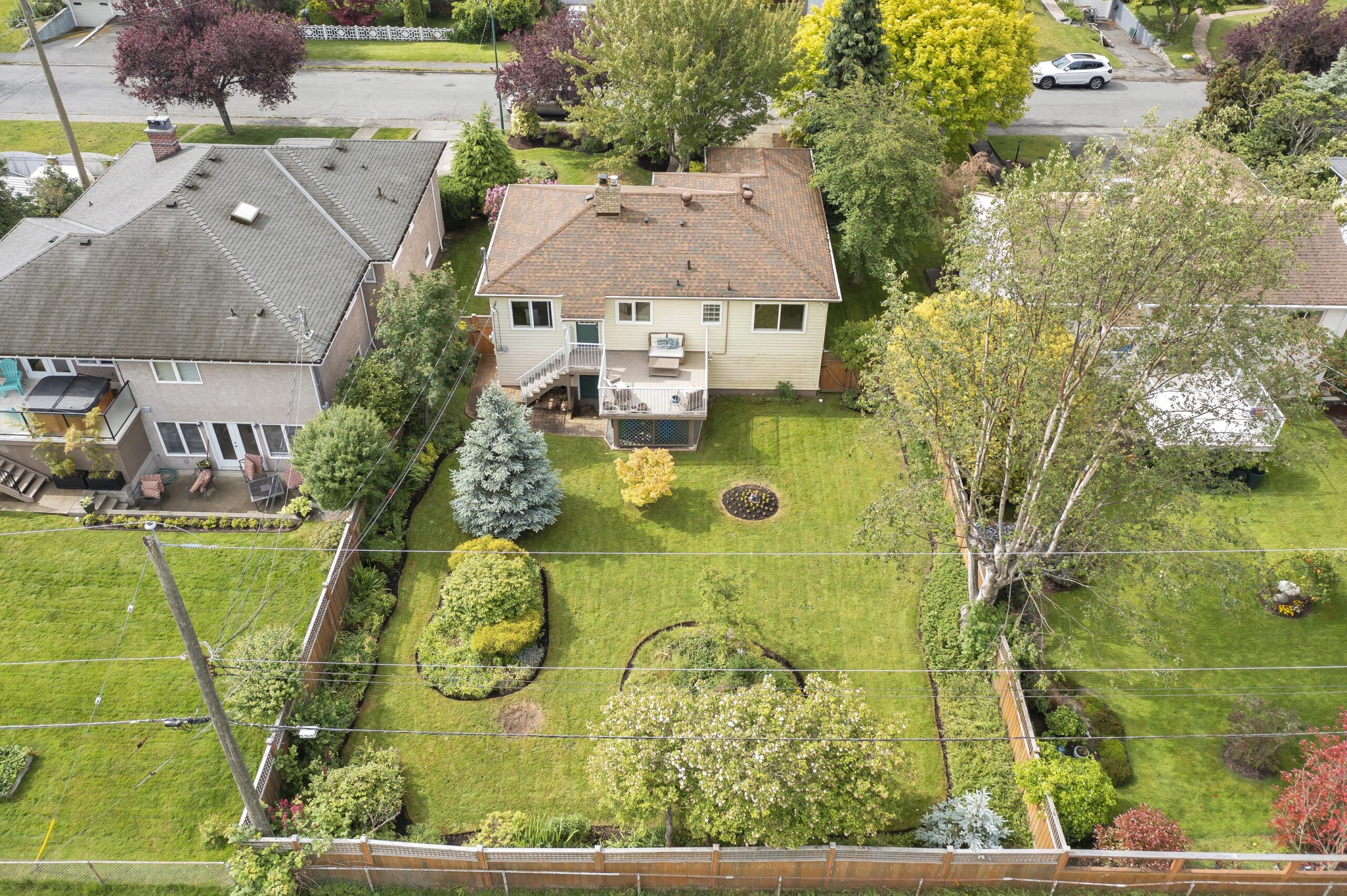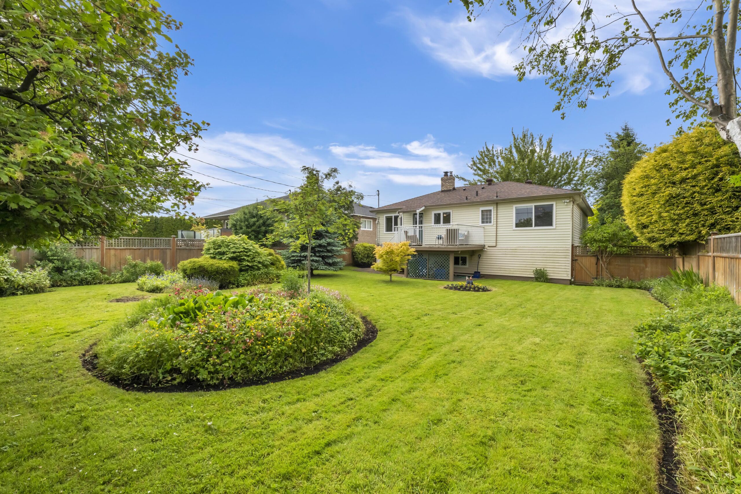 The main floor features 3 bedrooms, a living room with separate dining area, and a large walk out deck looking out over your manicured backyard oasis.