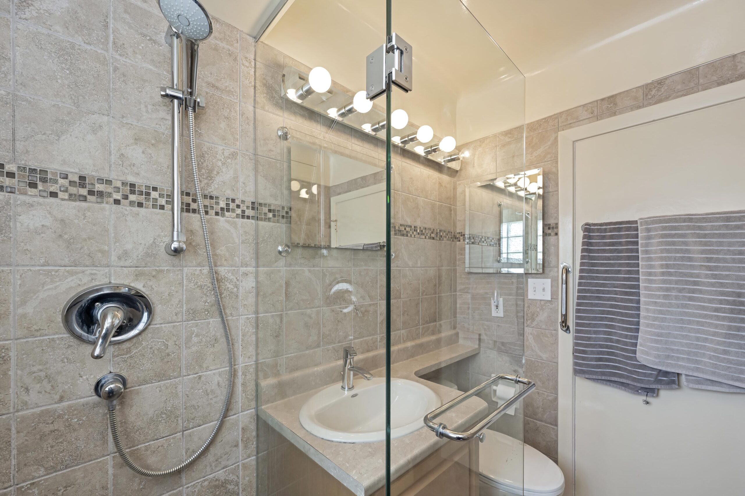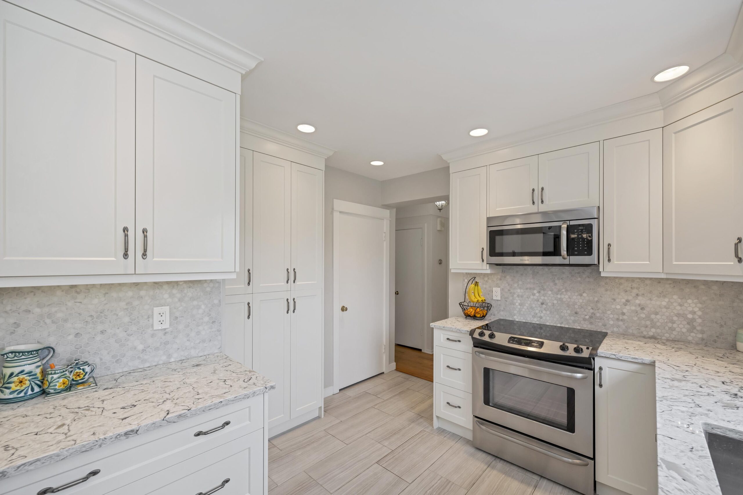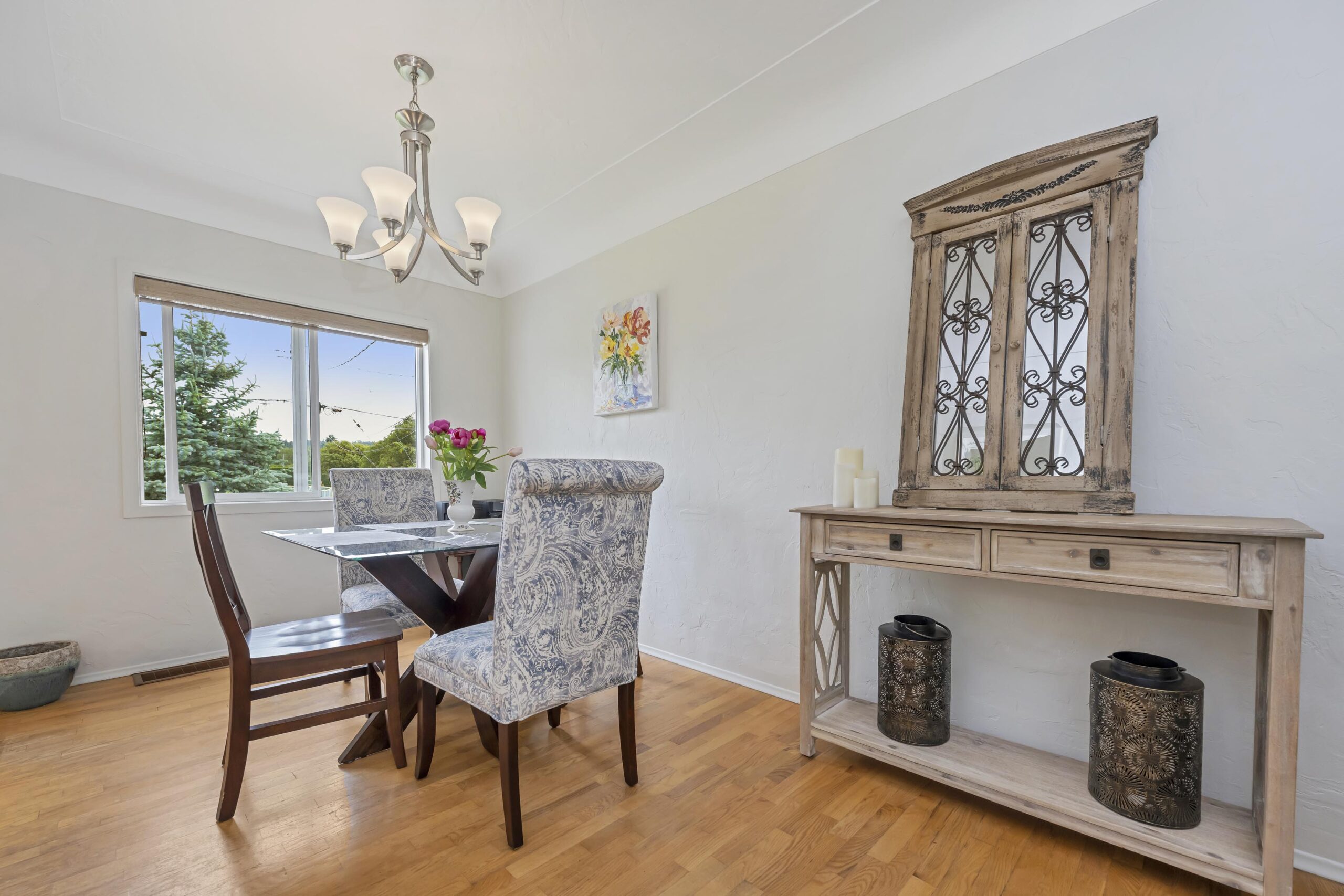 Now I’d like to introduce you to the best of the new. The windows have all been updated, this home features a gas furnace, gas hot water heater, gas insert fireplace, a beautifully updated kitchen with modern quartz counter-tops and stainless appliances, and the main bathroom is inviting, contemporary and delightful in its artisan tile work.