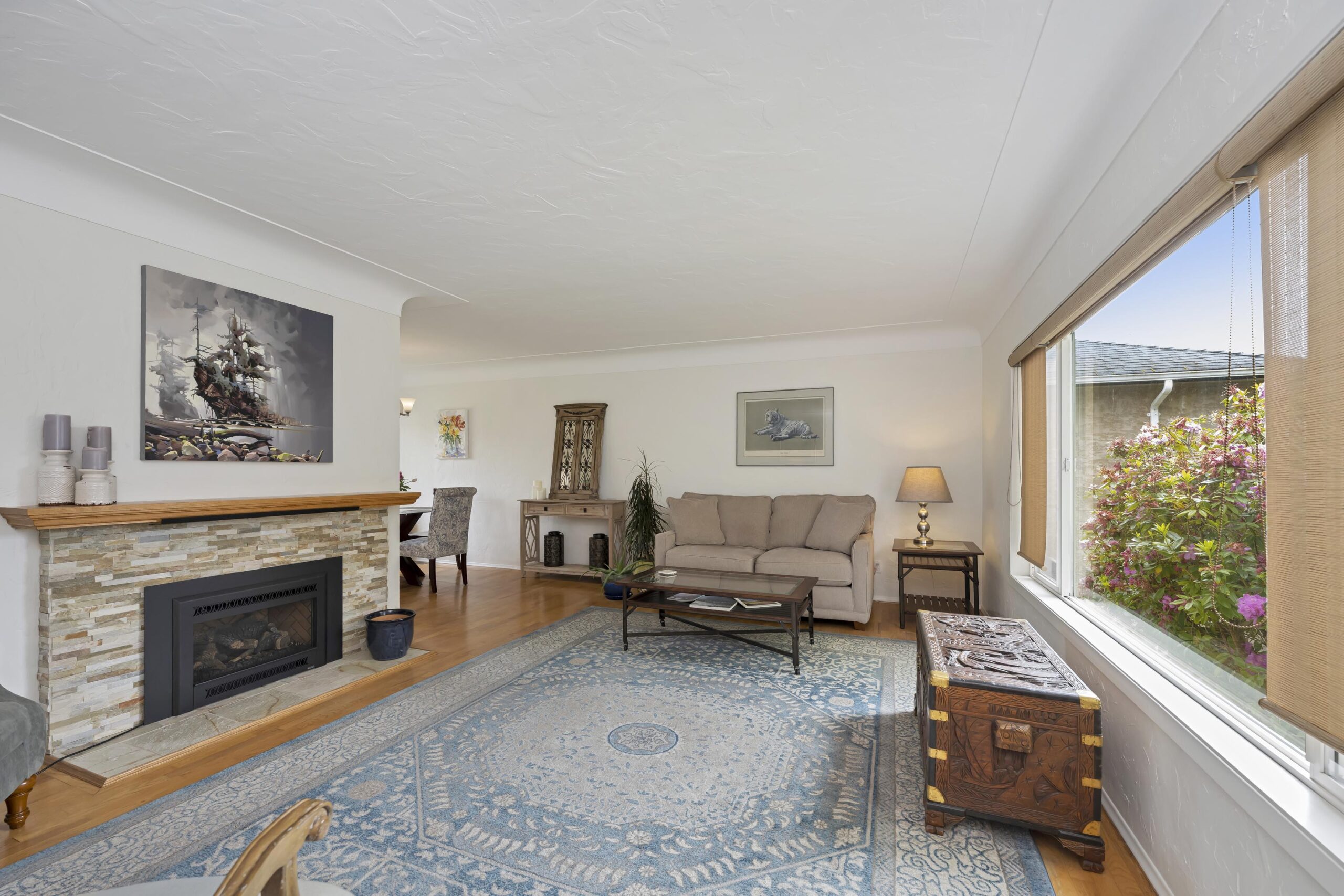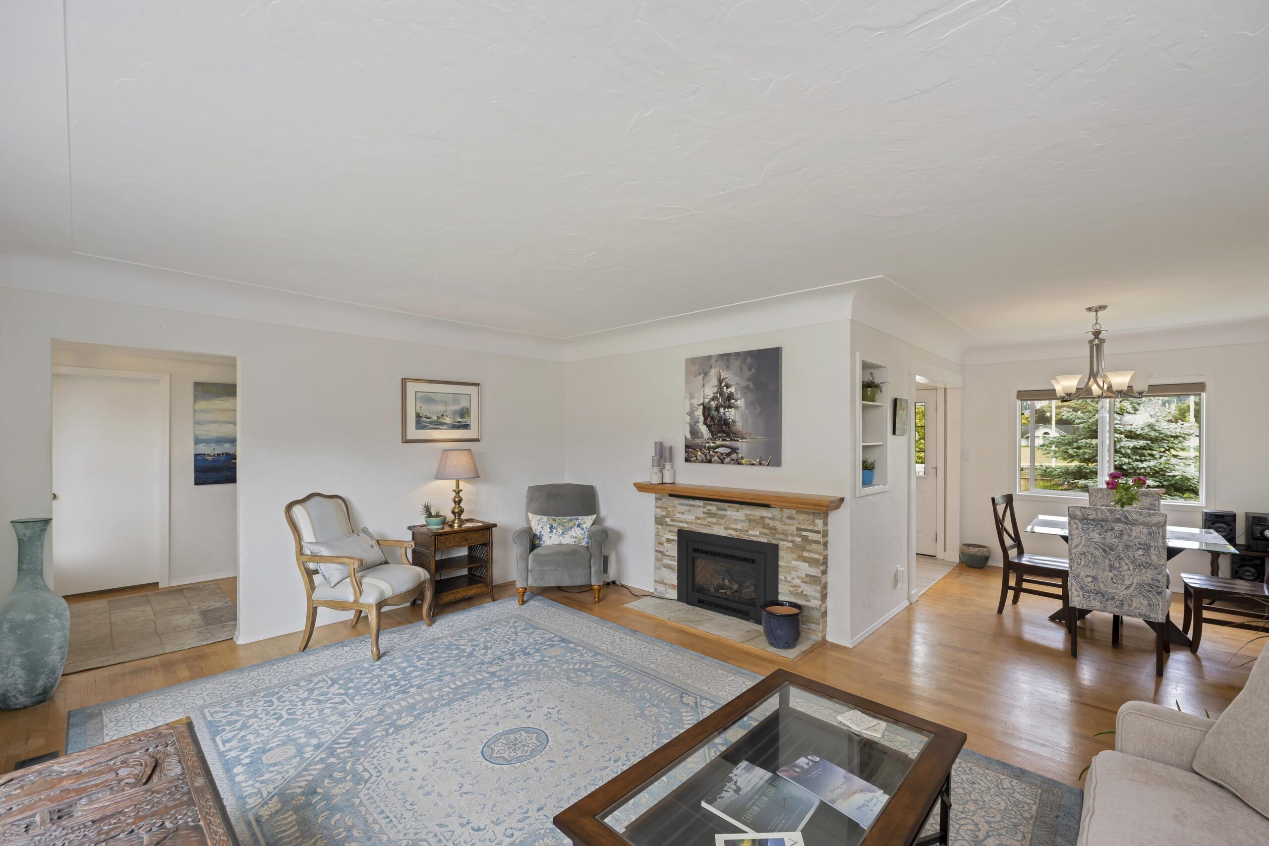 First meet the charm. Original solid hardwood floors, classic coved ceilings, big bright windows and craftsman texturing and attention to detail.